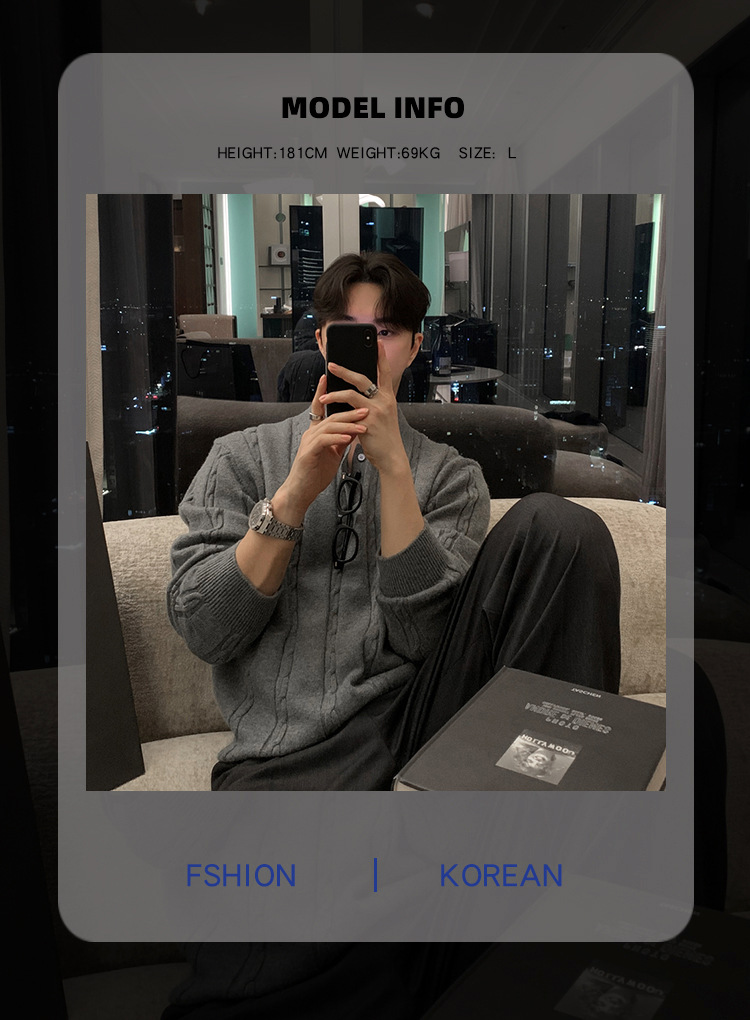 Odkrijte popolno ravnovesje med udobjem in prefinjenostjo z moškim puloverjem ASClO Elegantna zimska verzija. Navdihnjen s sodobnim korejskim slogom, ta pulover ima zaprosten ovratnik (lapel), ki moški podobi doda prefinjen pridih.